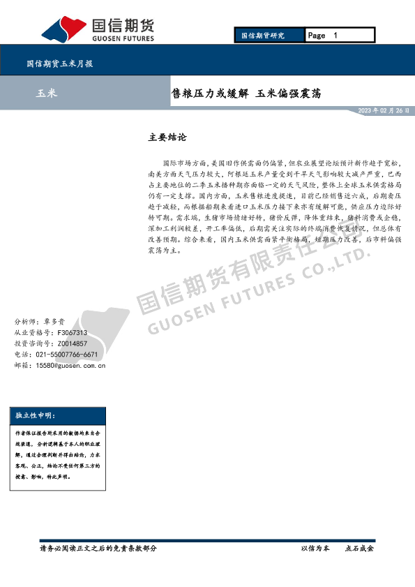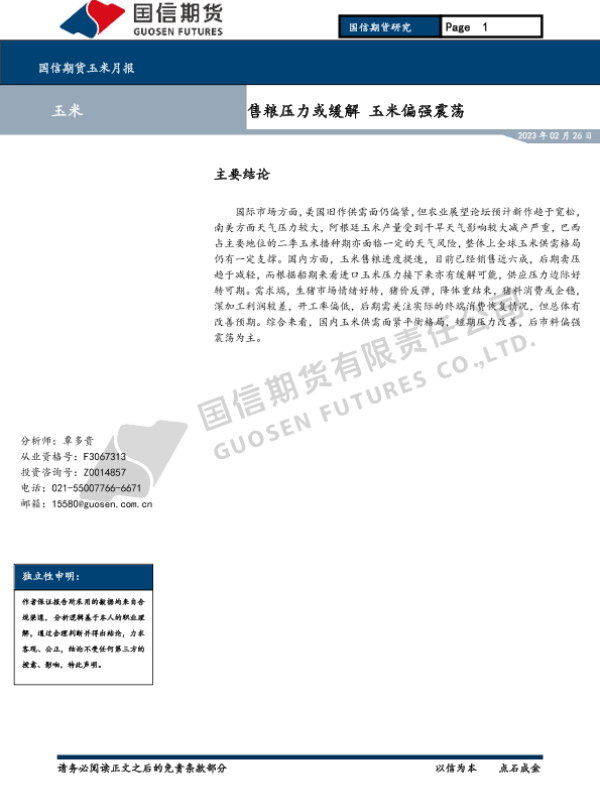 【国信期货】【20230226】国信期货玉米月报:售粮压力或缓解玉米偏强震荡-9页