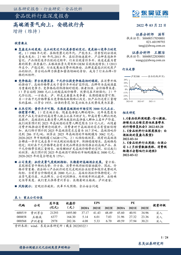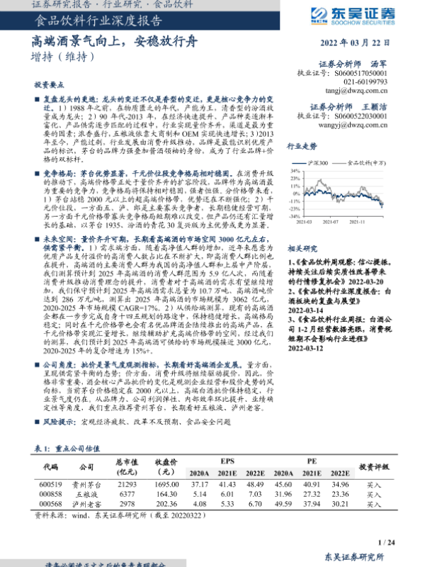 【东吴证券】【20220322】食品饮料行业深度报告:高端酒景气向上,安稳放行舟-24页