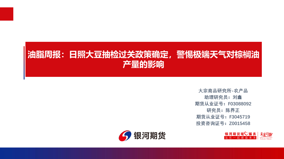 【银河期货】【20230519】油脂周报_日照大豆抽检过关政策确定_警惕极端天气对棕榈油产量的影响-22页