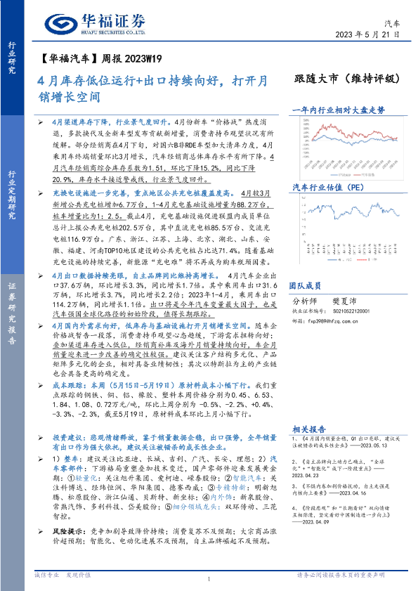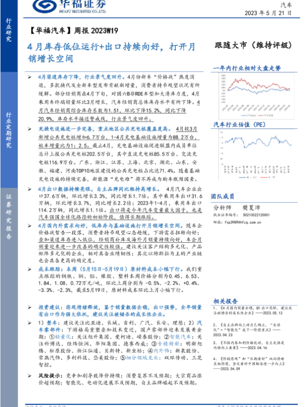 【华福证券】【20230521】华福汽车周报2023W19:4月库存低位运行+出口持续向好,打开月销增长空间-9页