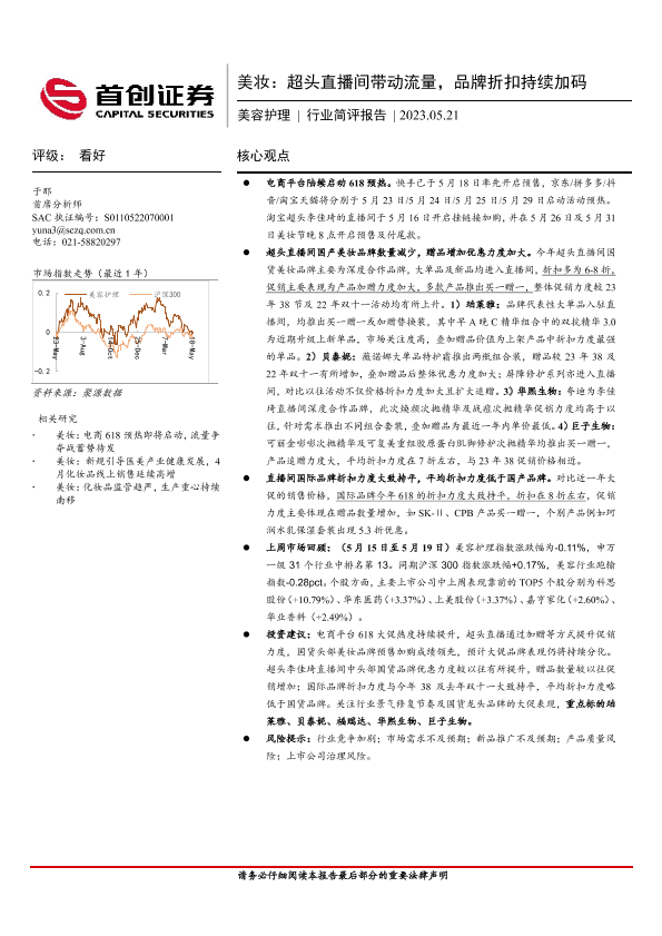 【首创证券】【20230521】美妆:超头直播间带动流量,品牌折扣持续加码-14页