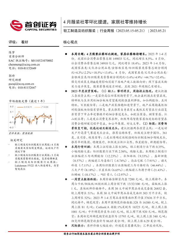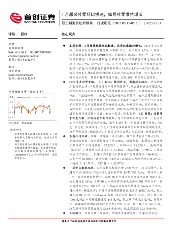 【首创证券】【20230521】轻工制造及纺织服装行业周报:4月服装社零环比提速_家居社零维持增长-15页