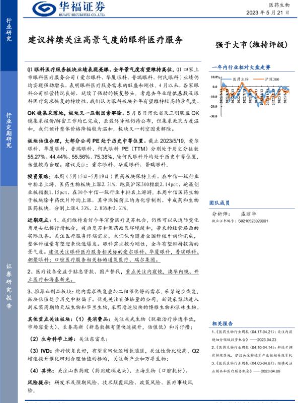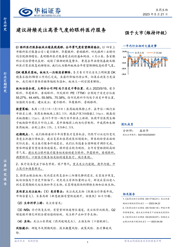 医疗行业 医药生物 投资建议 眼科医疗服务 证券研究