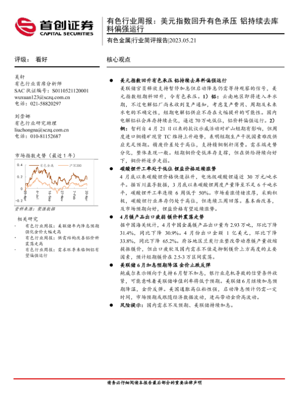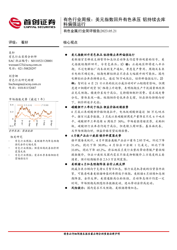 【首创证券】【20230521】有色行业周报:美元指数回升有色承压铝持续去库料偏强运行-20页