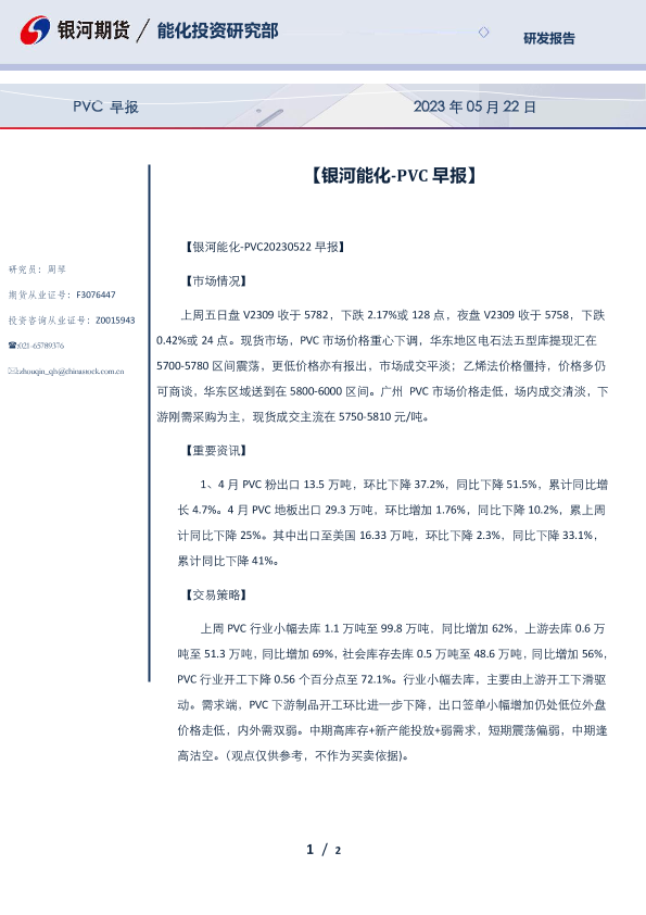 【银河期货】【20230522】PVC早报 2023年 05月 22日-2页