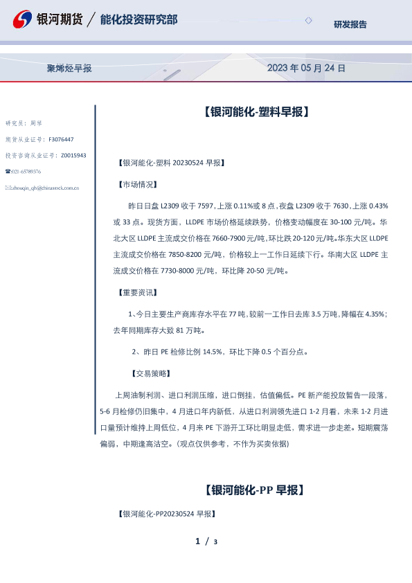 【银河期货】【20230524】聚烯烃早报 2023年 05月 24日-3页