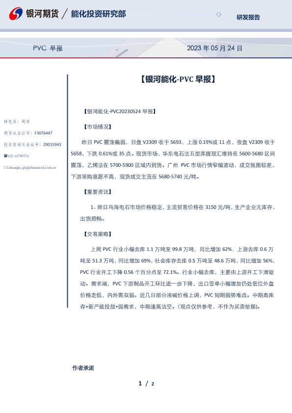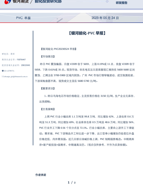 【银河期货】【20230524】PVC早报 2023年05月24日-2页