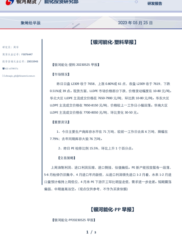 【银河期货】【20230525】聚烯烃早报 2023年 05月 25日-3页