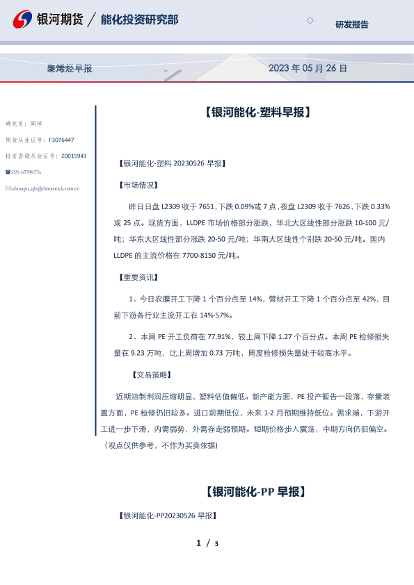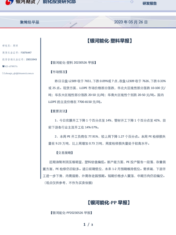 【银河期货】【20230526】聚烯烃早报 2023年 05月 26日-3页
