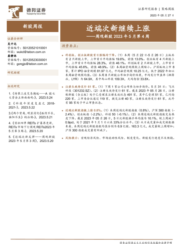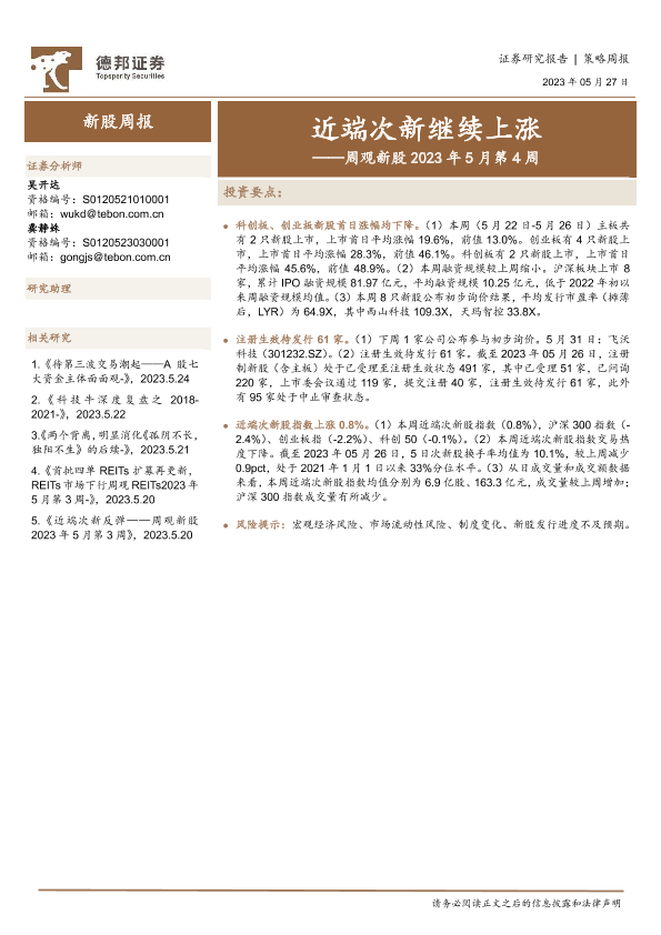 【德邦证券】【20230527】周观新股2023年5月第4周_近端次新继续上涨-12页