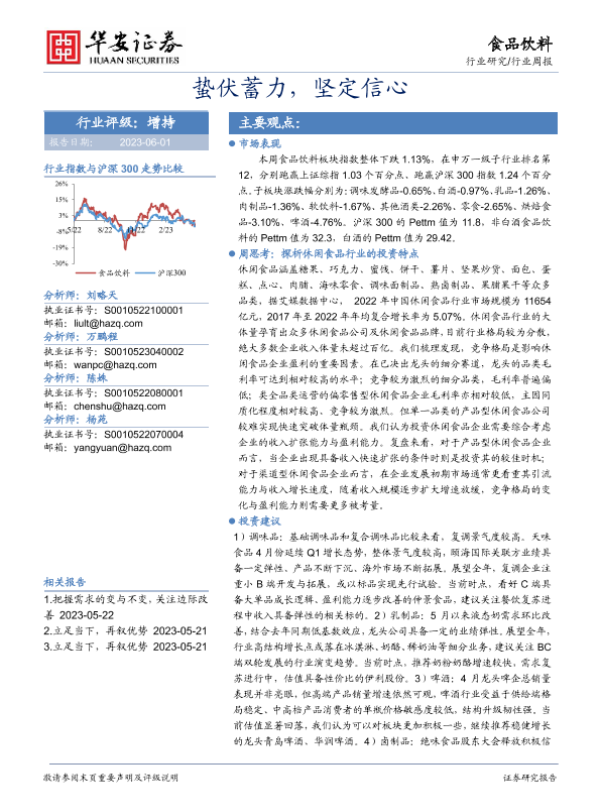 【华安证券】【20230601】20230528-华安证券-食品饮料行业周报_蛰伏蓄力_坚定信心-17页