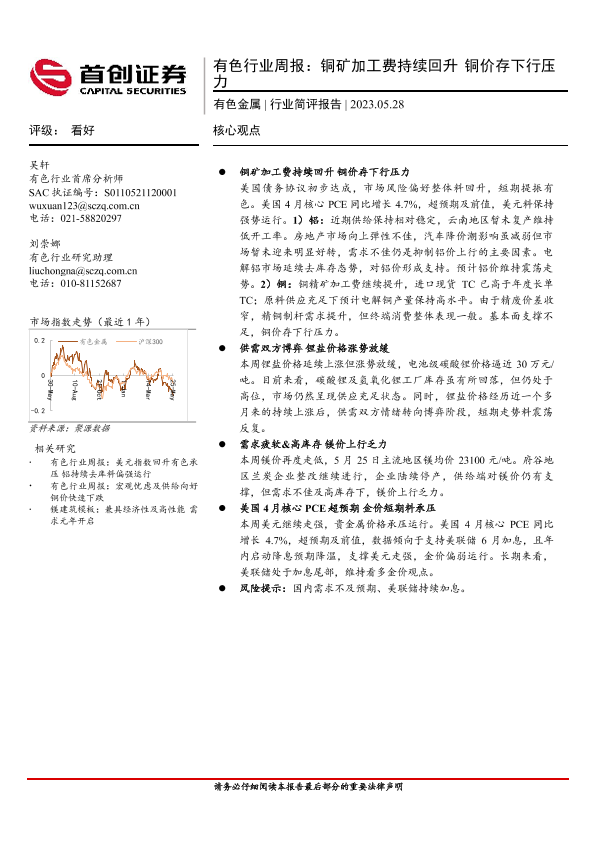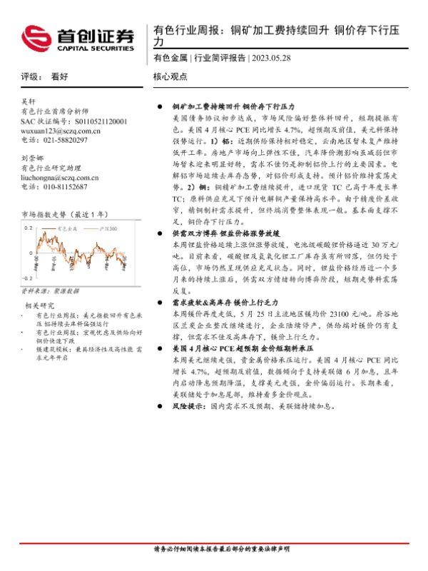 【首创证券】【20230528】有色行业周报:铜矿加工费持续回升_铜价存下行压力-20页