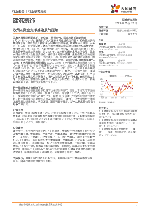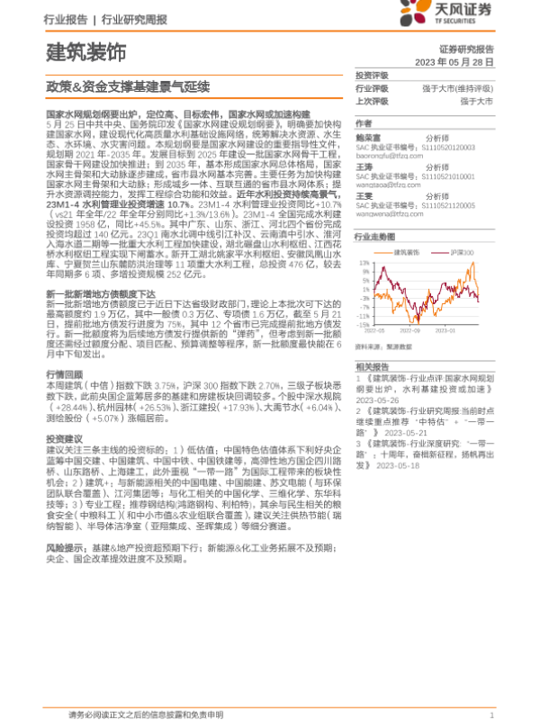 【天风证券】【20230528】建筑装饰行业研究周报 政策_资金支撑基建景气延续-6页