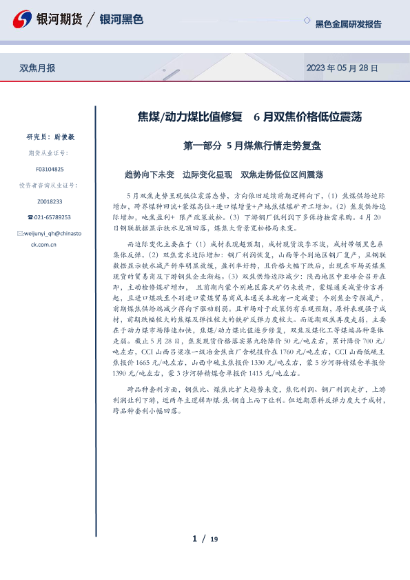 【银河期货】【20230528】双焦月报_焦煤_动力煤比值修复_6月双焦价格低位震荡-19页