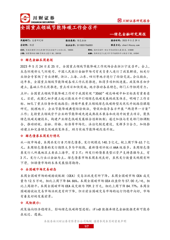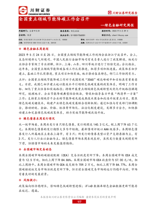 【川财证券】【20230529】全国重点领域节能降碳工作会召开——绿色金融研究周报-7页