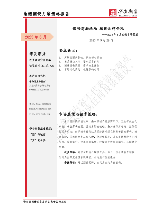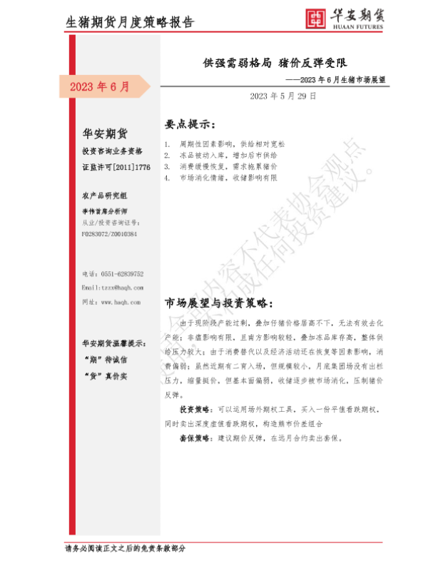 【华安期货】【20230529】2023年6月生猪市场展望_供强需弱格局_猪价反弹受限-6页