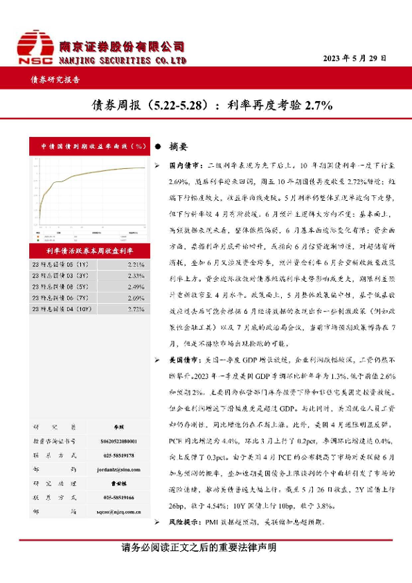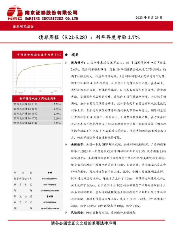 【南京证券】【20230529】债券周报 利率再度考验2.7%-33页