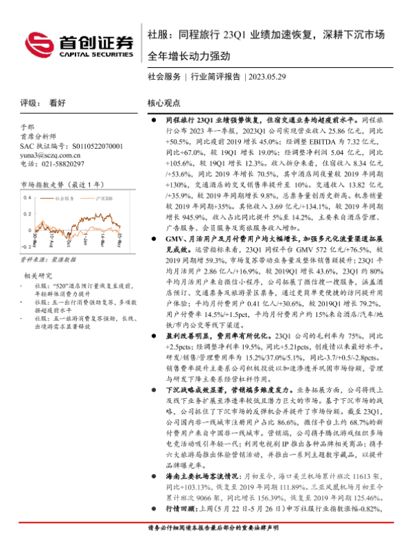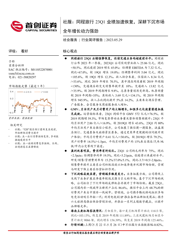 【首创证券】【20230529】社服:同程旅行23Q1业绩加速恢复,深耕下沉市场全年增长动力强劲-11页