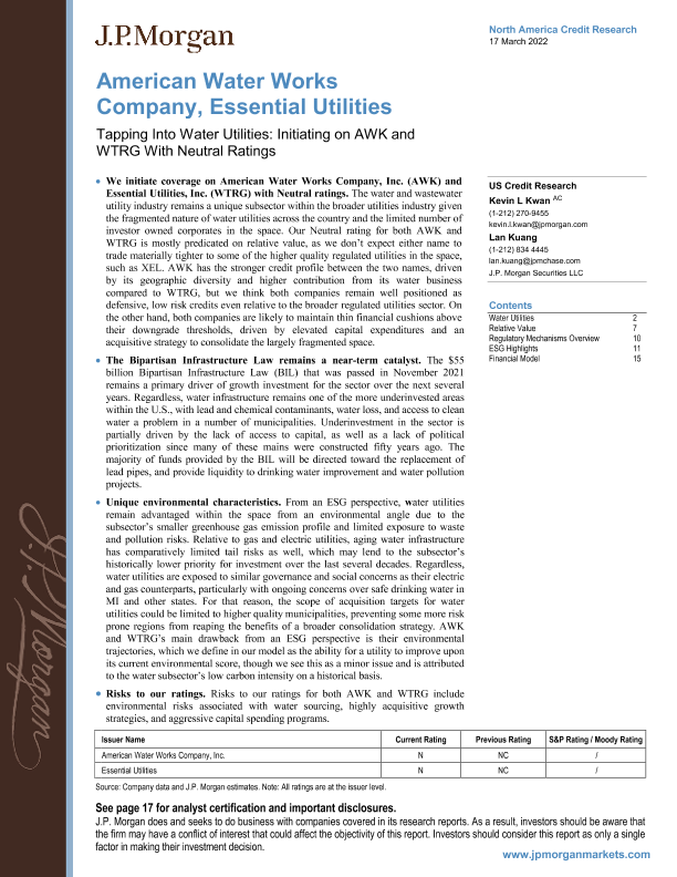 【J.P. Morgan】【20220317】Tapping Into Water Utilities Initiating on AWK and WTRG With Neutral Ratings-21页