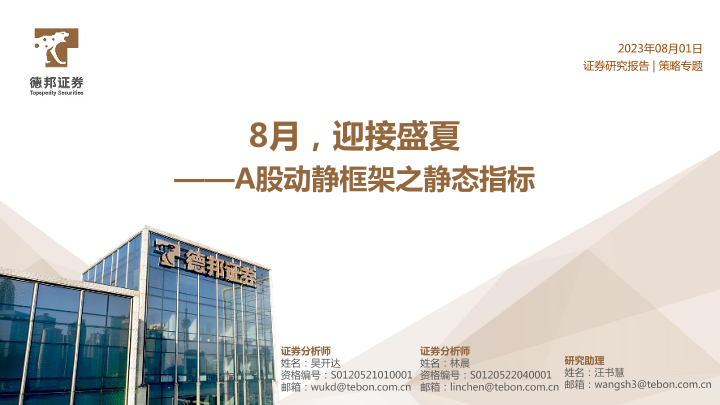 【德邦证券】【20230801】20230801-德邦证券-策略专题_A股动静框架之静态指标-8月_迎接盛夏-20页