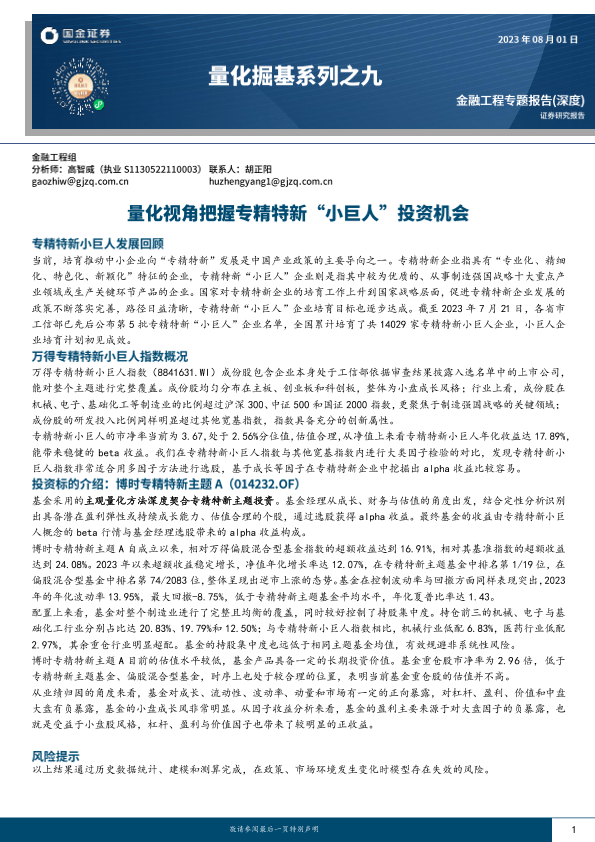 【国金证券】【20230801】量化掘基系列之九_量化视角把握专精特新_小巨人_投资机会-16页