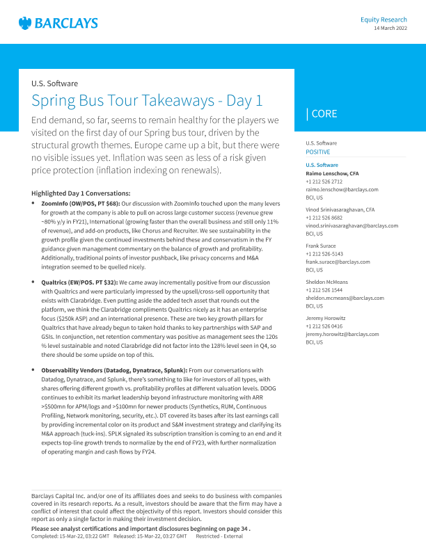 【Barclays Capital Inc.】【20220314】U.S. Software Spring Bus Tour Takeaways - Day 1-39页