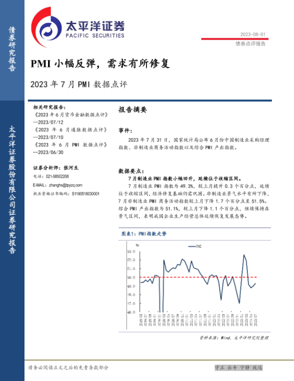 【太平洋证券】【20230801】2023年7月PMI数据点评:PMI小幅反弹,需求有所修复-7页