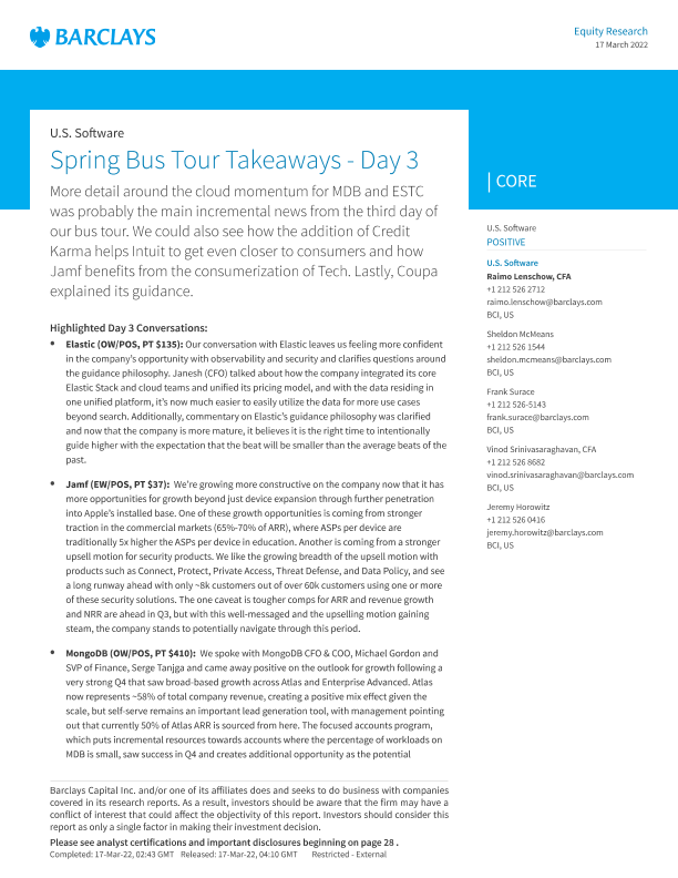 【Barclays Capital Inc.】【20220317】U.S. Software Spring Bus Tour Takeaways - Day 3-33页