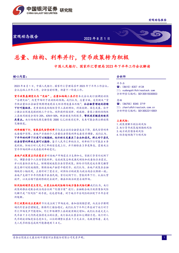 【银河证券】【20230801】中国人民银行_国家外汇管理局2023年下半年工作会议解读-9页