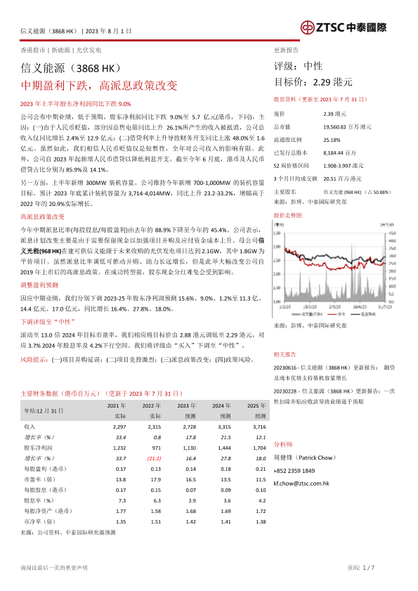 【中泰国际】【20230801】信义能源-03868.HK-中期盈利下跌_高派息政策改变-7页