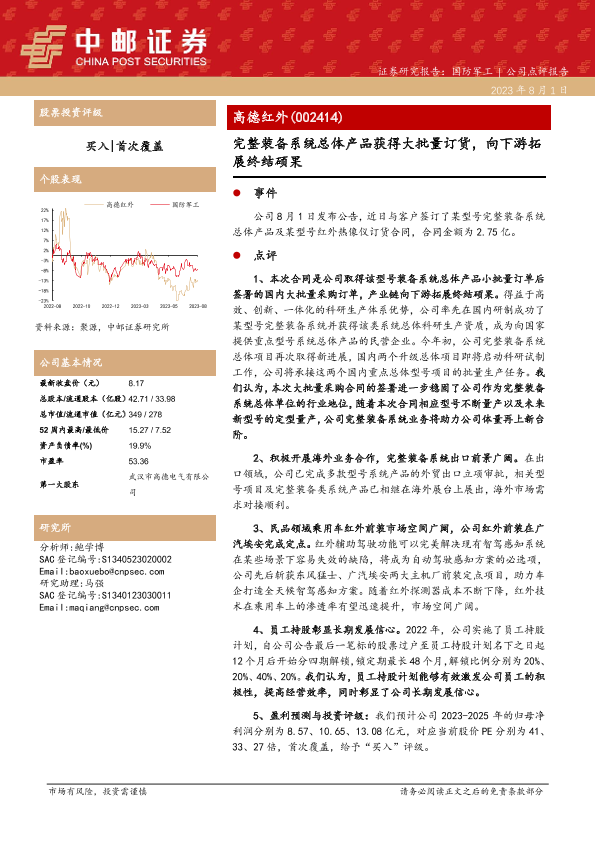 【中邮证券】【20230801】高德红外-完整装备系统总体产品获得大批量订货_向下游拓展终结硕果-5页