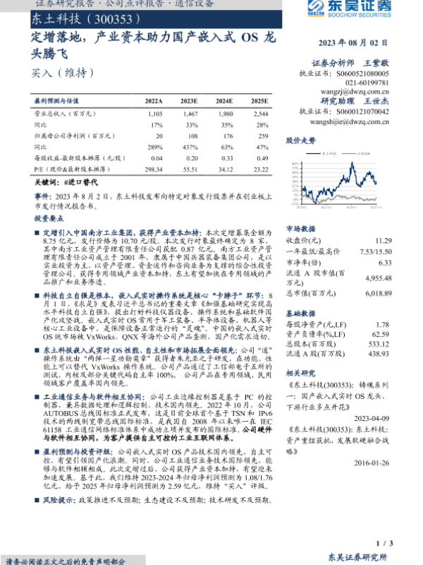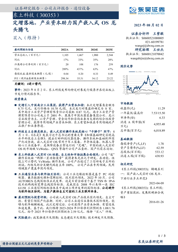【东吴证券】【20230802】东土科技(300353):定增落地,产业资本助力国产嵌入式OS龙头腾飞-3页