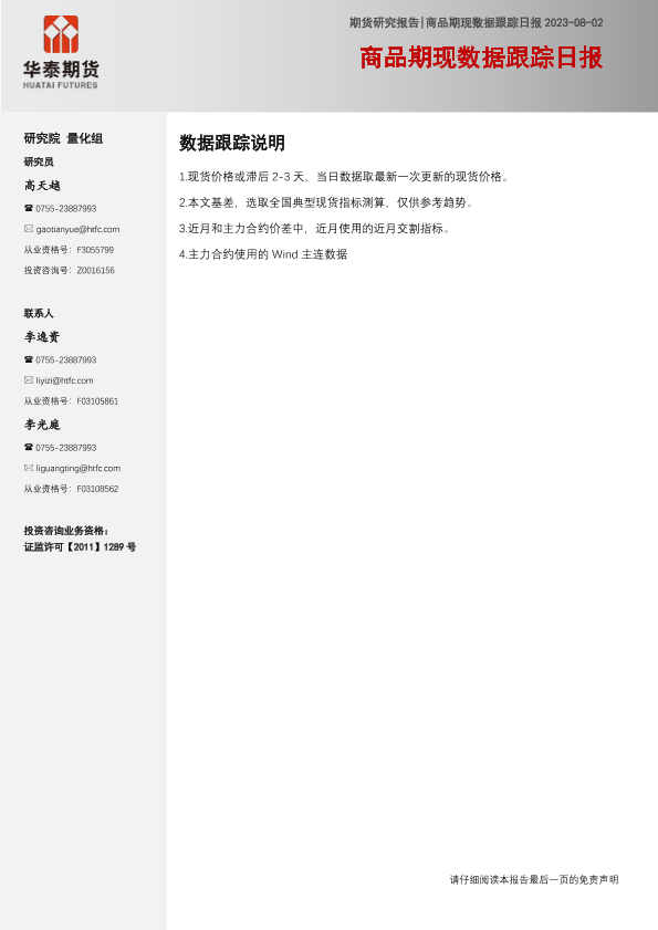 【华泰期货】【20230802】20230802-华泰期货-商品期现数据跟踪日报-5页