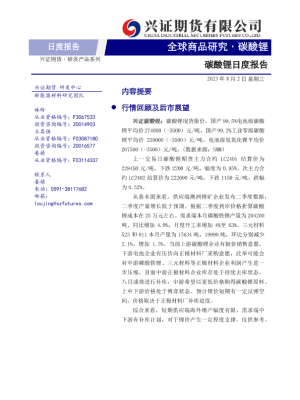 【兴证期货】【20230802】20230802-兴证期货-碳酸锂日度报告-9页