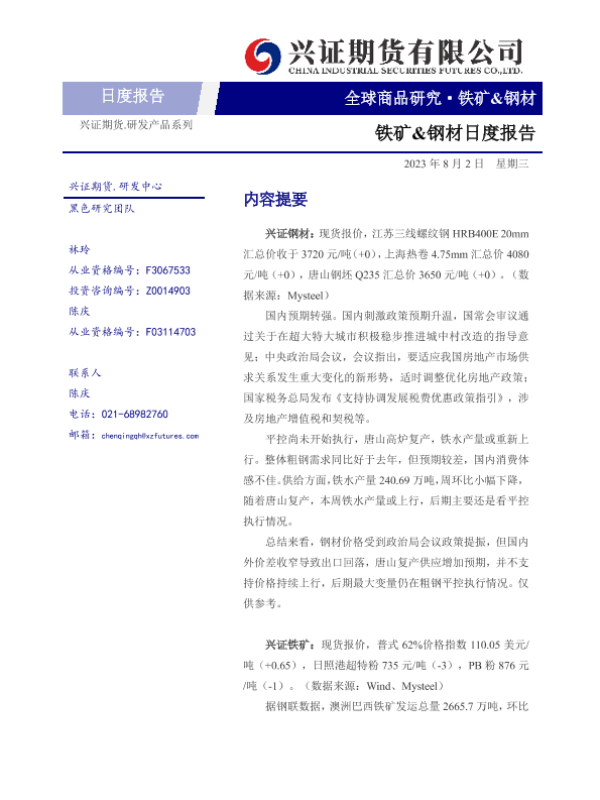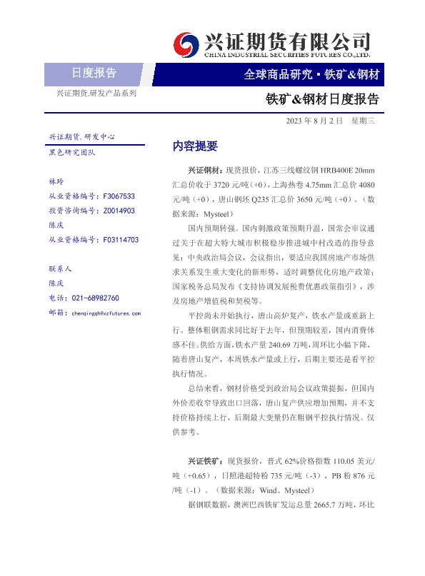 【兴证期货】【20230802】铁矿&钢材日度报告-6页