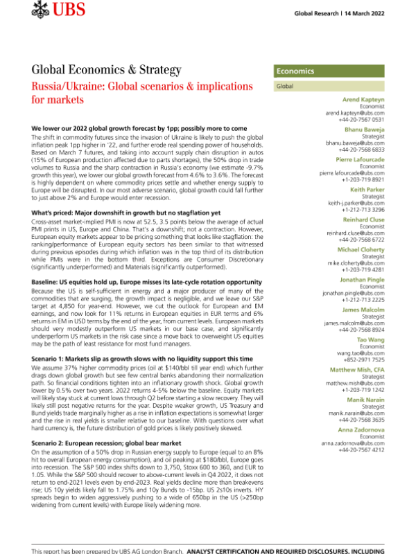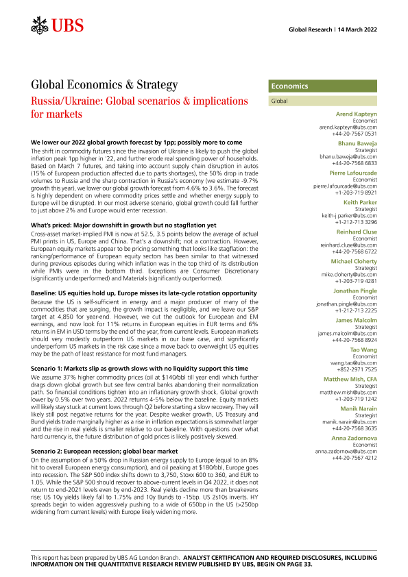 【瑞银(UBS)】【20220314】瑞银-全球投资策略-俄罗斯、乌克兰:全球情景及对市场的影响-36页