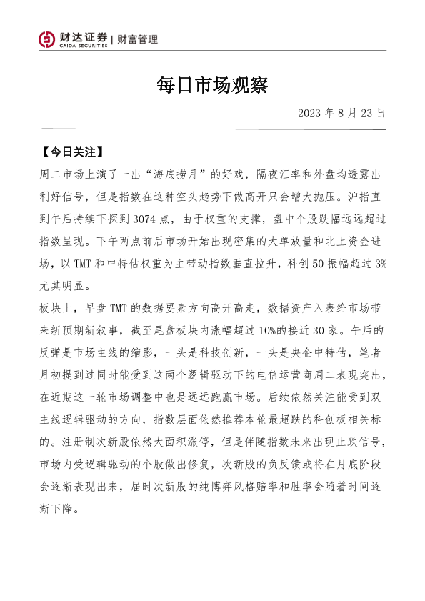 【财达证券】【20230823】每日市场观察-8页