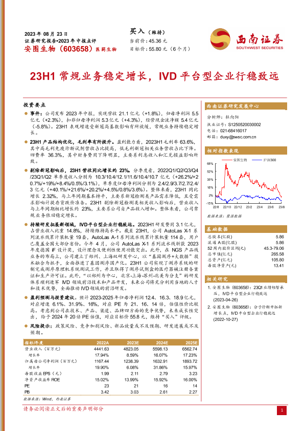 【西南证券】【20230823】23H1常规业务稳定增长_IVD平台型企业行稳致远-6页
