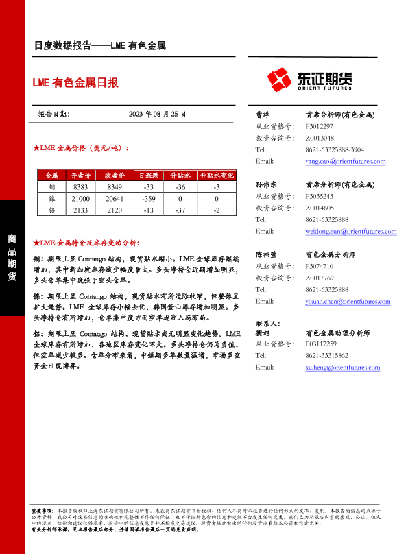 【东证期货】【20230825】LME有色金属日度数据报告-11页