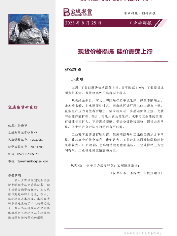【宝城期货】【20230825】20230825-宝城期货-工业硅周报_现货价格提振_硅价震荡上行-21页