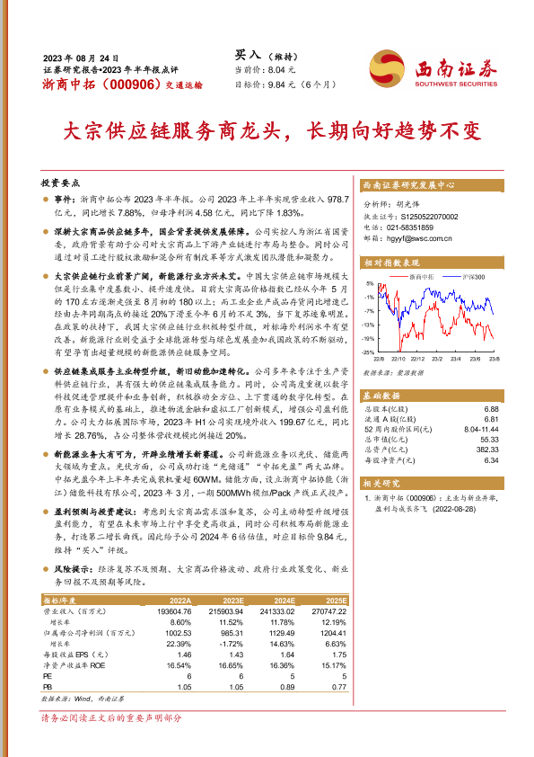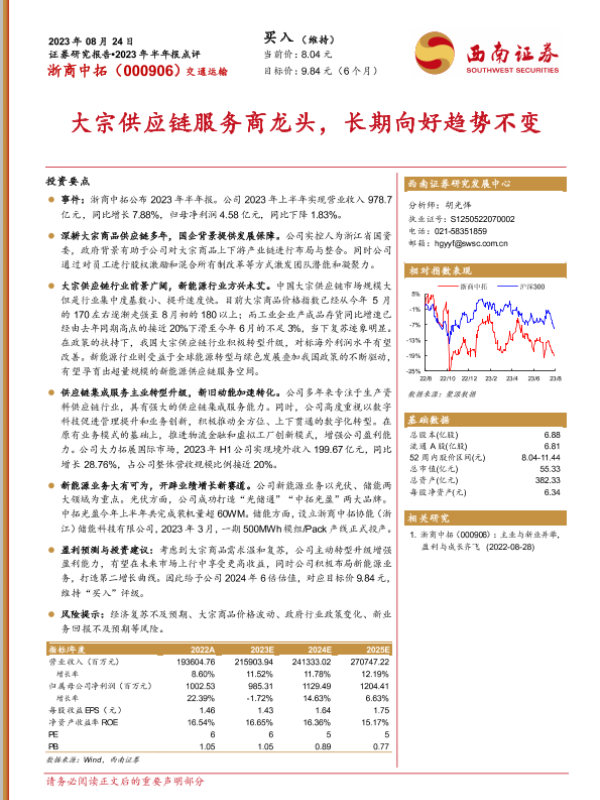 【西南证券】【20230824】浙商中拓(000906):大宗供应链服务商龙头,长期向好趋势不变-27页