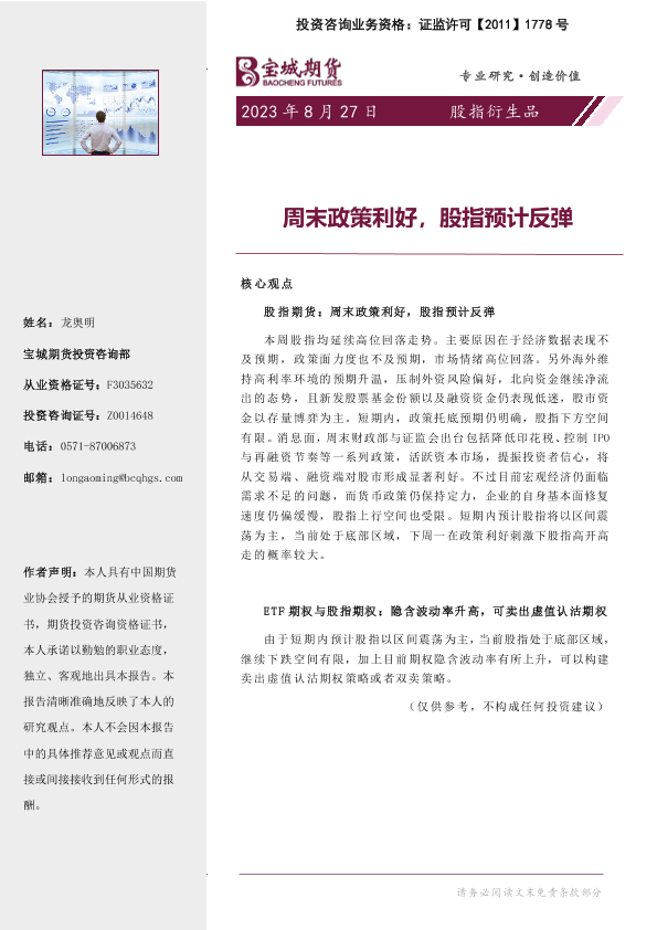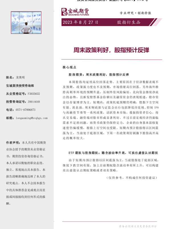 【宝城期货】【20230827】周末政策利好_股指预计反弹-16页
