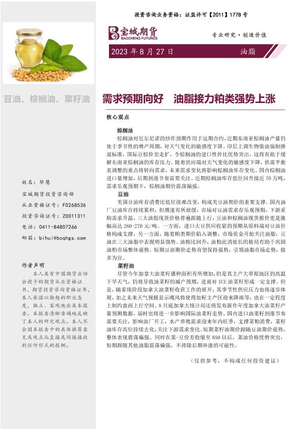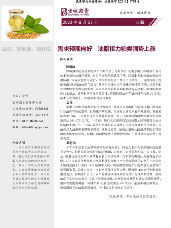 【宝城期货】【20230827】油脂周报_需求预期向好_油脂接力粕类强势上涨-11页