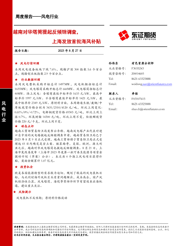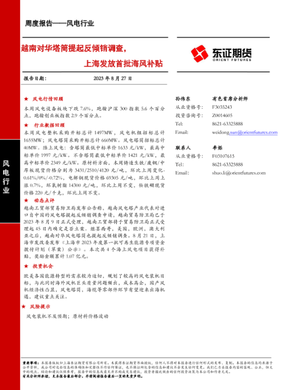 【东证期货】【20230827】越南对华塔筒提起反倾销调查,上海发放首批海风补贴-20页