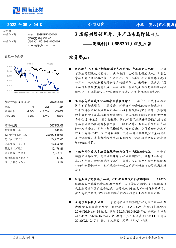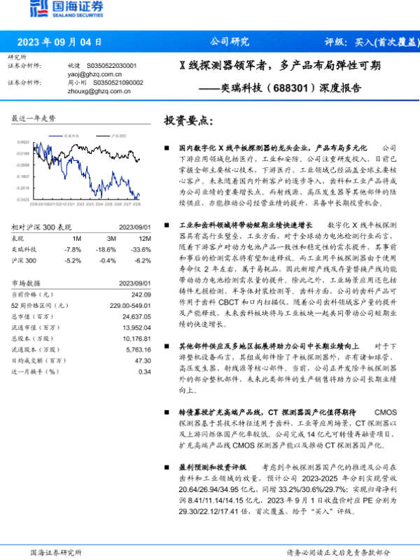【国海证券】【20230904】深度报告-奕瑞科技-X线探测器领军者_多产品布局弹性可期-28页