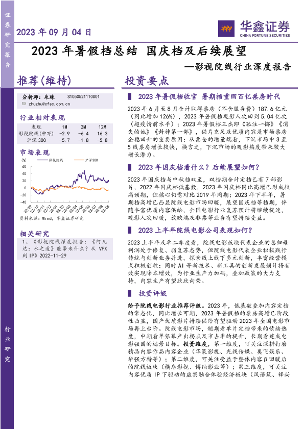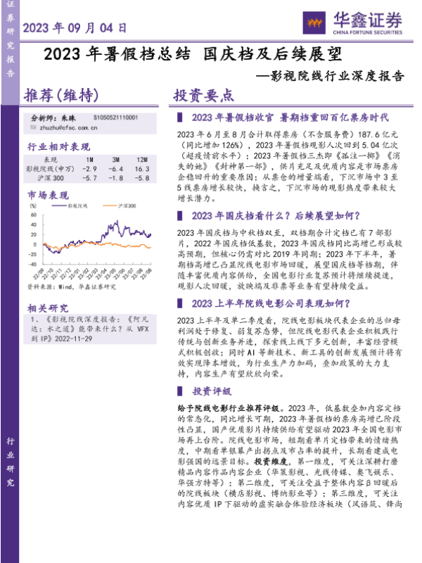 【华鑫证券】【20230904】2023年暑假档总结国庆档及后续展望-15页