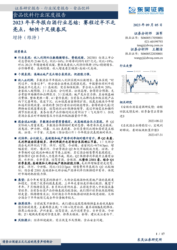 【东吴证券】【20230905】2023年半年报白酒行业总结:赛程过半不乏亮点,韧性十足候春风-17页