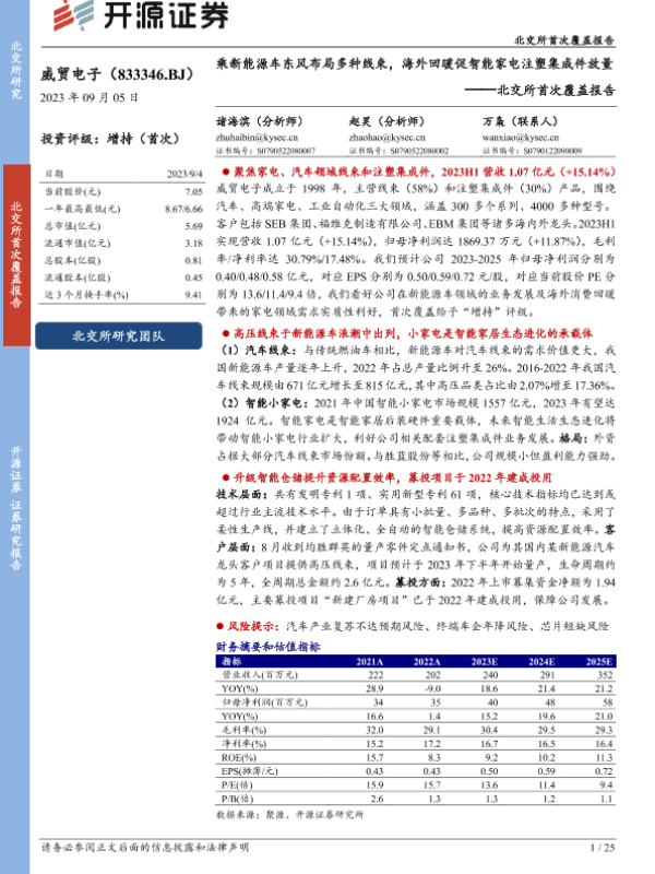 【开源证券】【20230905】深度报告-20230905-开源证券-北交所首次覆盖报告_乘新能源车东风布局多种线束_海外回暖促智能家电注塑集成件放量-25页
