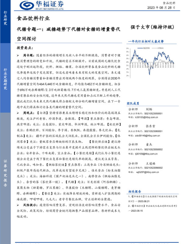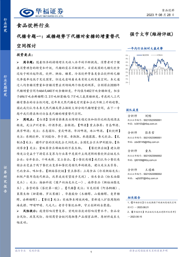 【华福证券】【20230828】食品饮料行业代糖专题一:减糖趋势下代糖对食糖的增量替空间探讨-19页