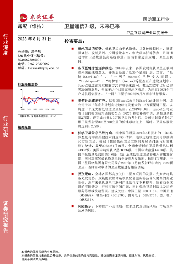 【东莞证券】【20230831】卫星互联网产业深度报告:卫星通信升级,未来已来-13页